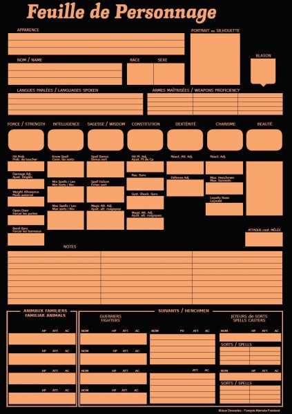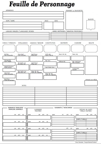 Feuille de personnage AD&D Descartes bilingue 2