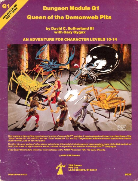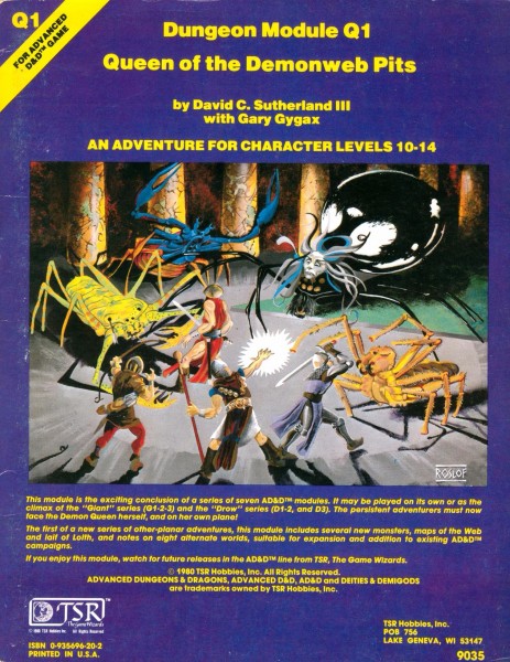 Ce module est la conclusion excitante d’une série de sept modules AD&D. Il peut être joué seul ou comme l’apogée de la série des géants (G1–2–3) et de la série des drows (D1–2 et D3). Les aventuriers tenaces doivent maintenant faire face à la Reine démoniaque elle-même et sur son propre plan.Avis