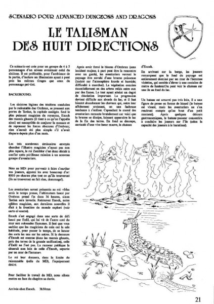 Ce scénario est créé pour un groupe de 4 à 6 personnages avoisinant le niveau 6. Il est préférable, pour l'ambiance de la partie, d'inclure un illusionniste ayant à peu près les mêmes tirages que ceux du personnage pré-tiré.