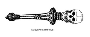 Enfin, Orcus possède le sceptre de mort (Sceptre d’Orcus), bâton d’obsidienne couronné d’un crâne. Ce sceptre cause la mort (ou l’annihilation) de toute créature dont il effleure la peau, à moins qu’elle n’ait un statut aussi élevé qu’Orcus (c’est le cas des autres princes démons, des diables, saints, demi-dieux, etc.) ! Les autres pouvoirs légendaires de cet objet sont amplement décrits dans le Guide du Maître.