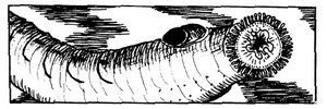 Les lamproies sont des anguilles proches des sangsues, vivant aussi bien en eau salée qu’en eau douce. Elles n’habitent jamais de pièces d’eau peu profondes. Elles se nourrissent en mordant leurs victimes, s’accrochant aux infortunées créatures à l’aide de leur bouche en forme de sphincter, garnie de dents cruelles. Une fois attachée, la lamproie commencera à sucer le sang au cours des rounds suivants faisant subir 2 points de dégâts pour chacun de ses dés de vie. Ainsi un spécimen géant infligerait 10 points de dégâts par round.