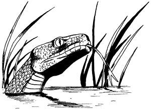 Ces serpents se tapissent le plus souvent en attendant leur proie, préférant les endroits boisés ou les marais. Ils attaquent en mordant et en s’enroulant pour étouffer leur proie. Une attaque d’étreinte réussie indique des dégâts de constriction automatiques à chaque round suivant. Toute créature de type humanoïde peut s’échapper de l’étreinte par la force. Ceci est résolu par un test d’ouverture des portes avec un malus de -1 au jet (voir serpent géant, constricteur).