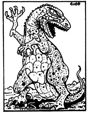 Étrange mutation de l’homme-lézard, les babilleurs sont des habitants des marécages, grands et lourds, surnommés jacasseurs des marais par les tribus indigènes vivant à proximité de leur milieu naturel bourbeux. Leur couleur prédominante est un jaune sale, mais leur ventre est gris. Des tâches grises marbrées dessinent d’étranges motifs sur leur corps musculeux. D’apparence, le babilleur ressemble à un petit gorgosaure doté d’une queue flexible et robuste qu’il utilise pour rester stable en position debout.