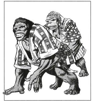 ÉCOLOGIE : Les grommams sont omnivores, se nourrissant de toutes sortes de fruits, légumes, noix, racines et un peu de viande. Ils n’ont aucun problème pour manger la même nourriture qu’humains et demi-humains.