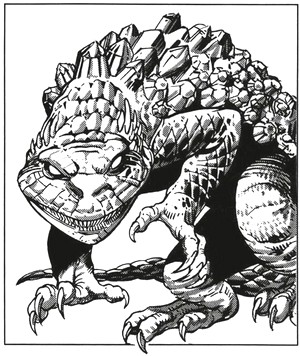 Le guetteur stellaire est un énorme reptile quadrupède qui s’établit au sein des astéroïdes. Sa peau rocailleuse simule un affleurement cristallin, lui conférant une Classe d’Armure de -2.