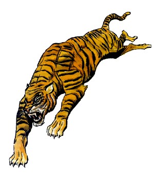 Les léopards aiment tout particulièrement bondir sur leur proie, ce qui impose un malus de -3 au jet de surprise de cette dernière. Ils peuvent ainsi effectuer des sauts de 6 m à la verticale et de plus de 7,50 m à l'horizontale. S'ils touchent leur adversaire avec leurs deux pattes avant, ils le griffent également avec leurs pattes arrière (ld4 points de dégâts chacune).