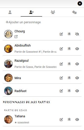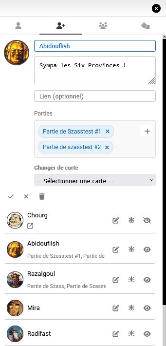 - Le créateur de la partie peut déplacer et éditer les personnages qui sont affectés à sa partie