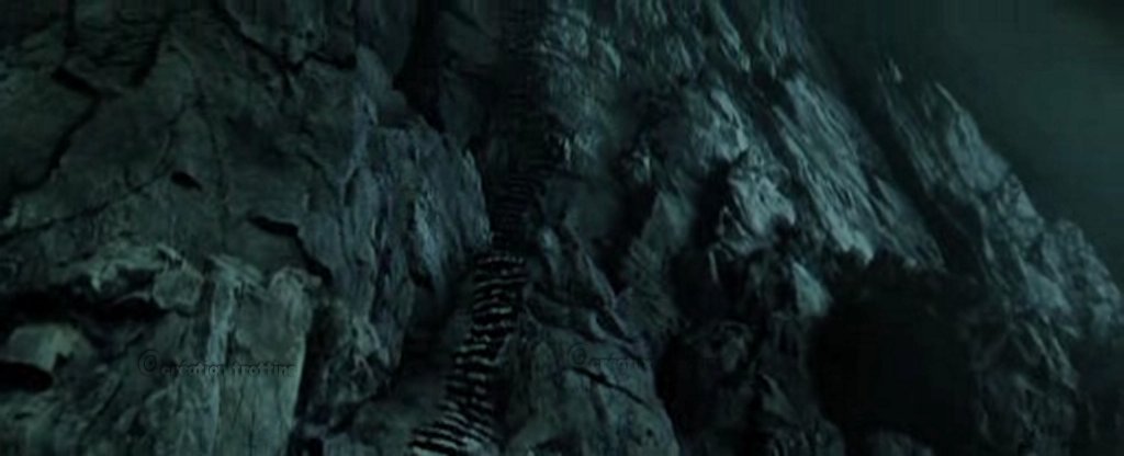 Les compagnons décident de poursuivre l’exploration du sentier mais de laisser les loups tranquille, en dépit des exhortation du prêtre rouge et de Faïzzen. Ce dernier reprend la tête de la colonne et avance jusqu’à l’intersection. Il prend à droite, avec un léger regret (il se serait bien confectionné un manteau en peau de loup). Le sentier se transforme à cet endroit en un escalier abrupt dont certaines marches sont manquantes. La montée semble possible, mais fatigante. Ab’hass jette un œil inquiet vers la caverne du loup et égrène son chapelet pour conjurer le mauvais sort. Le passage continue à perte de vue jusqu’au sommet du canyon.