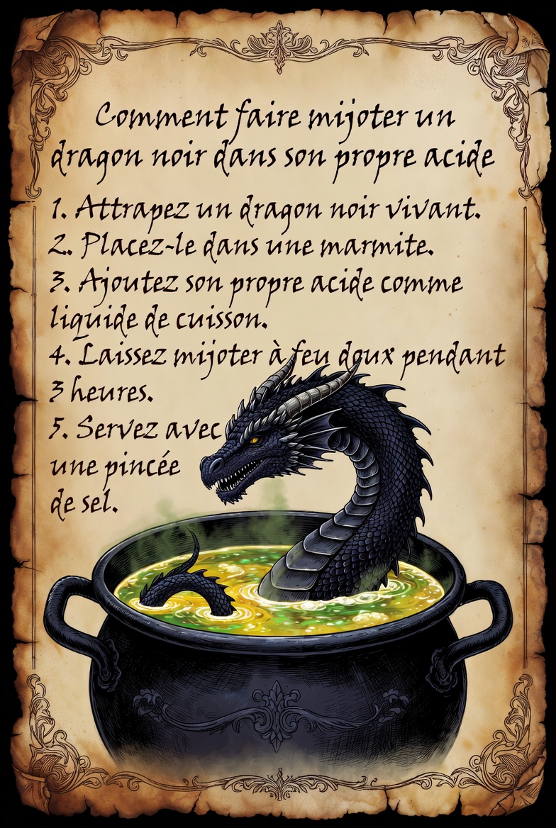 • 1 dragon noir adulte (de préférence mâle des marais acides)