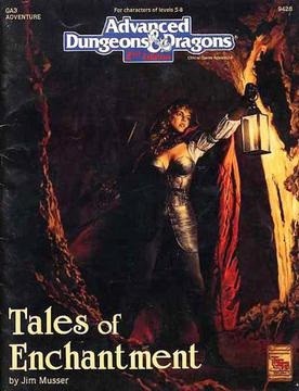 Les bois de la Veuve Murmurante ont toujours été un endroit terrifiant. Depuis des générations, des rumeurs, d’étranges bruits et le sous-bois sombre et impénétrable ont effrayé les cœurs sensibles. Mais les bois sont récemment devenus bien plus sinistres. Des voix familières flottant dans l’air attirent les gens à leur perte, des voyageurs reviennent sans mémoire, même les arbres s’animent parait-il et attaquent les imprudents ! Est-ce l’endroit où aller pour chercher un garçon perdu ? Histoires d’enchantement est une aventure pour les règles avancées de Donjons et Dragons, une aventure qui met l’accent sur le mystère de ces bois étranges. Mais pour résoudre l’énigme de la forêt, les héros doivent d’abord survivre à ses dangers. Histoires d’enchantement mettra les héros à l’épreuve, en sollicitant leurs esprits autant que leur acier.Avis