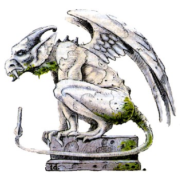 ÉCOLOGIE : les gargouilles étaient à l’origine des ornements de gouttière représentant des formes humaines ou animales particulièrement grotesques. Elles étaient conçues de manière à pouvoir projeter loin du mur l’eau s’écoulant le long des gouttières, de manière à prévenir l’érosion et les tache d’humidité sur les parois. Par la suite, un magicien inconnu se servit d’un terrible enchantement pour donner vie à ces sculptures. Depuis, la race des gargouilles prolifère dans tous les mondes connus.