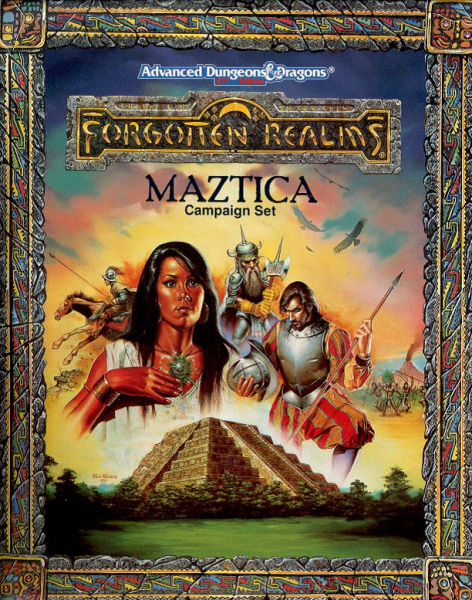 Situé dans les pays décrits pour la première fois dans la trilogie de romans Maztica, cet univers de campagne fournit aux joueurs et aux MD toutes les informations nécessaires pour recréer l'histoire d'Ironhelm, de Viperhand et de Feathered Dragon, ou pour créer leur propre campagne. Quatre nouvelles classes de personnages, Chevaliers Aigle, Chevaliers Jaguar, Tisseurs de Pluma et Façonneurs d’Hishna, ajoutent à la mystique de Maztica. De nouveaux sorts et objets magiques, de nouvelles divinités, de nouvelles compétences contribuent tous à l’exotisme de ce continent inspiré des aztèques et mayas d’Amérique Centrale.